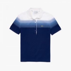 Women's Lacoste Navy Blue / Blue / White Polo Shirts Made in France Organic Cotton Piqué XU3-93819Y9