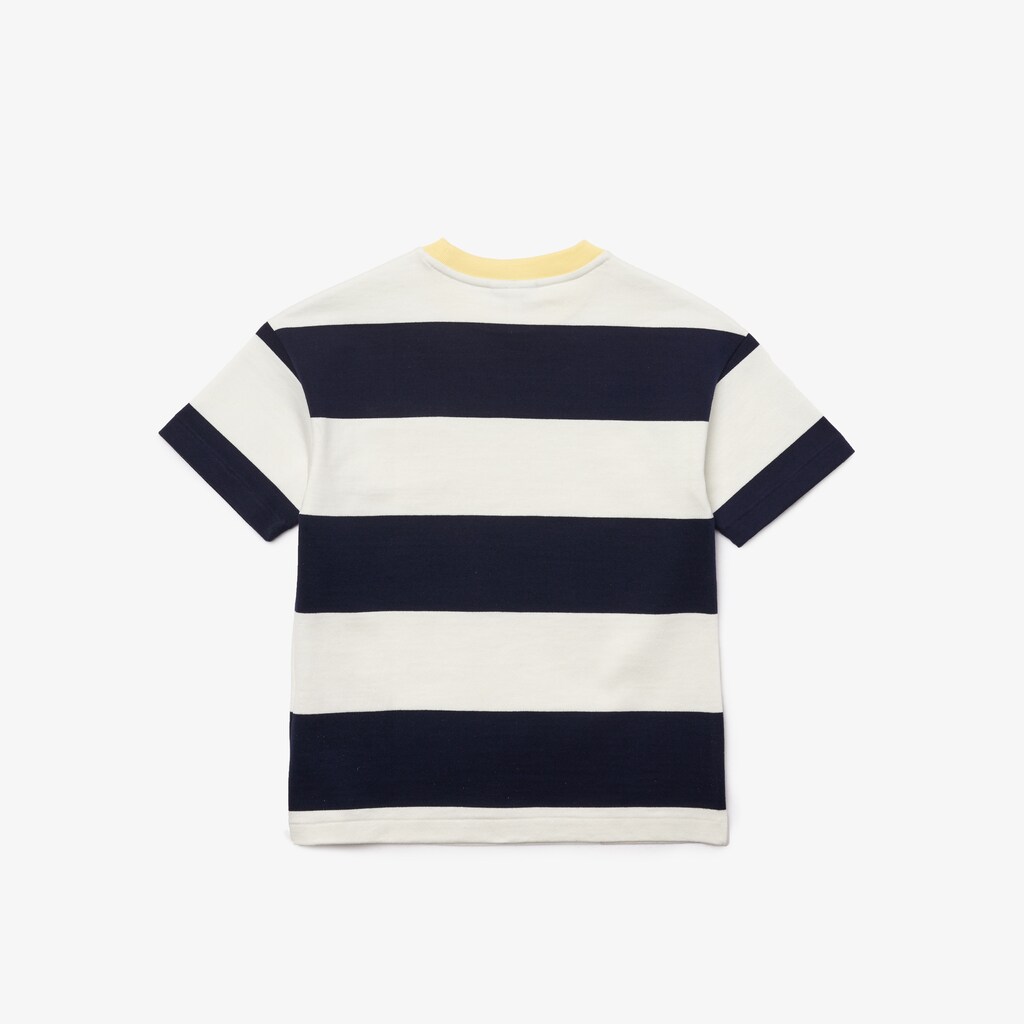 Kids' Lacoste White / Navy Blue T Shirts Crewneck Rugby Striped Cotton XT2-31253V3