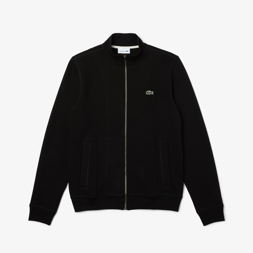 Men's Lacoste Black Jackets Zippered Stand-Up Collar Piqué Fleece DG2-96889D8