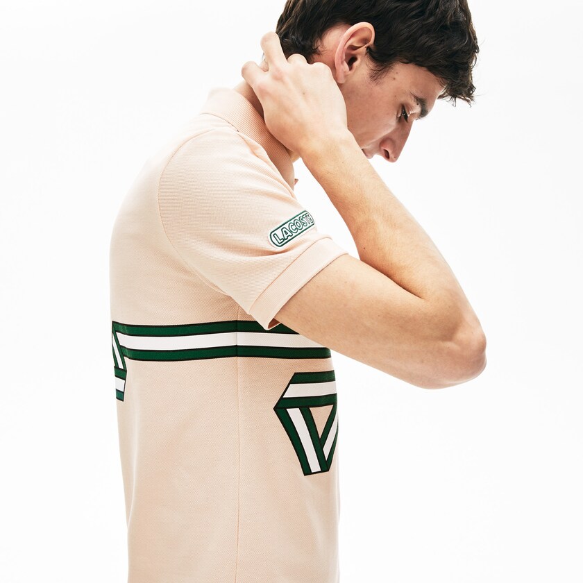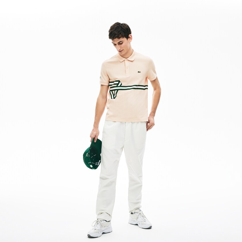Men's Lacoste Light Pink Shirts Stripe Print Polo IB5-35223X4