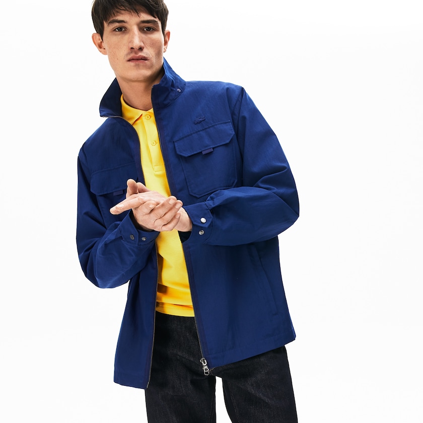 Men's Lacoste Navy Blue Jackets Lightweight Detachable-Hood YI2-99389S2