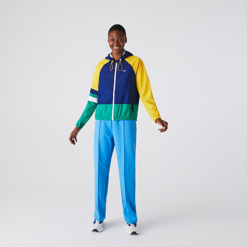 Women's Lacoste Blue / White / Yellow / Green Windbreaker SPORT Colorblock Zip Tennis NW3-26302P1