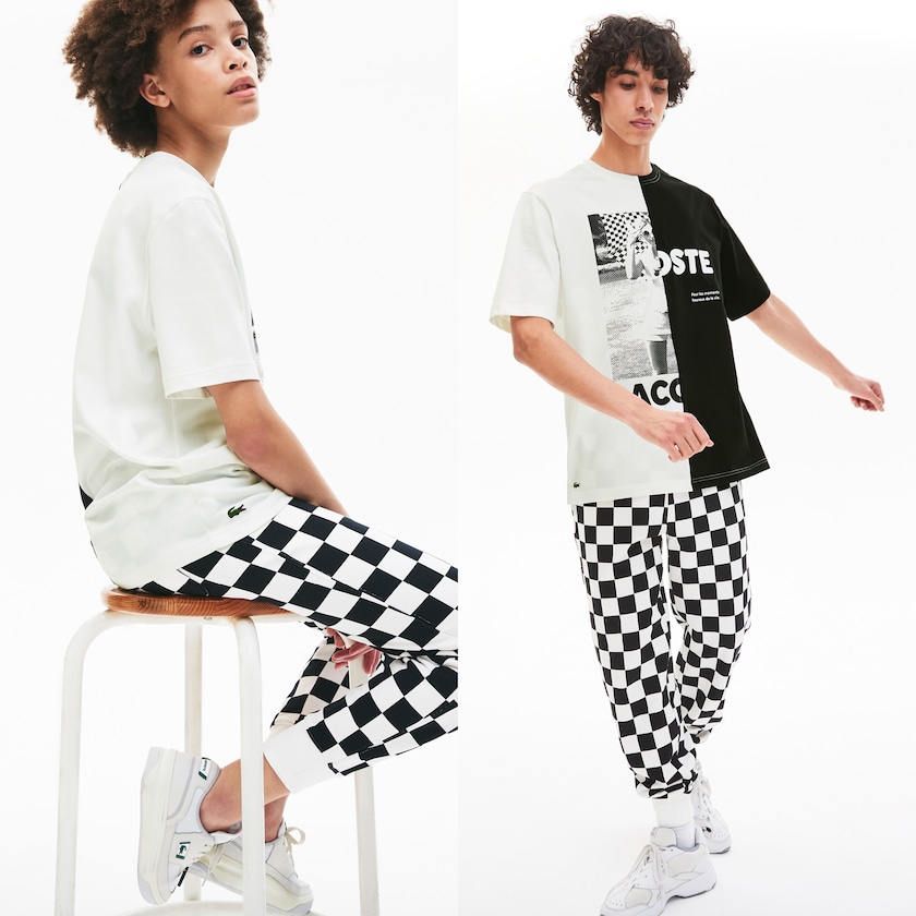 Dare to stand out of the crowd when you slip on this Lacoste Live tee with its destructured graphic design. With a vintage photo print on one side and trendy lettering on the other, this comfortable cotton jersey piece instantly asserts its unique flair. Men and women alike will appreciate its loose fit and neat sportswear look.