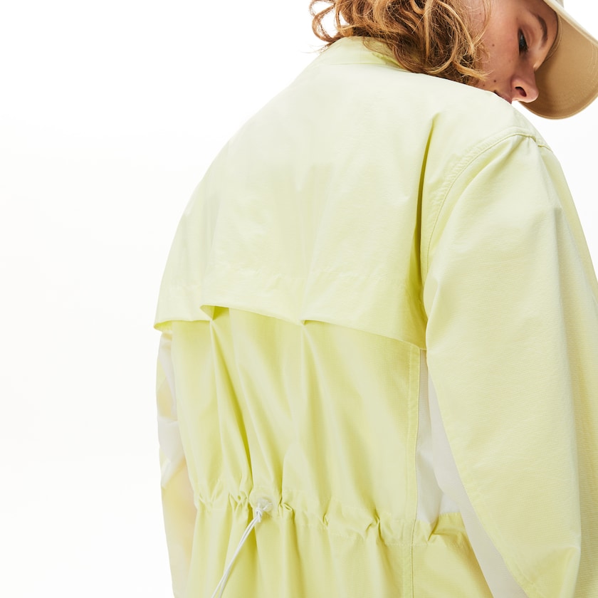 Women's Lacoste White / Yellow Parka Jackets Water-Resistant Long Nylon VQ9-76757R8